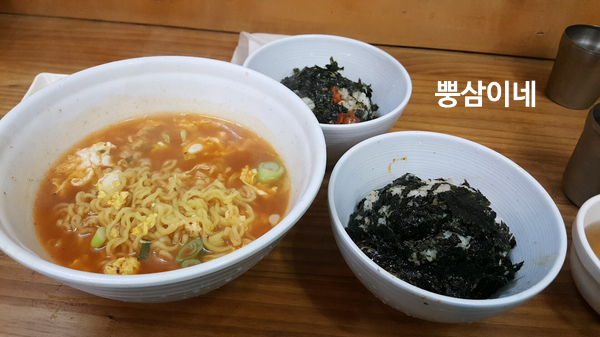 위 사진은 일반라면 + 김치참치 주먹밥 2개입니다