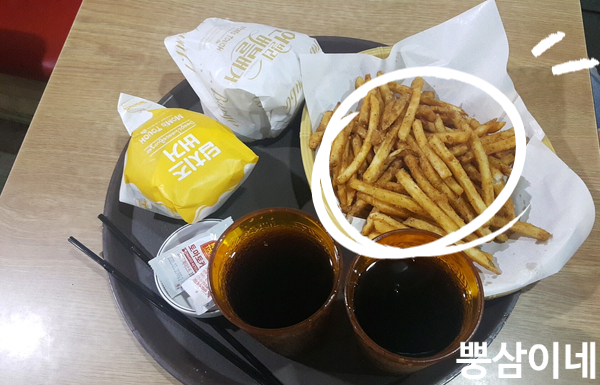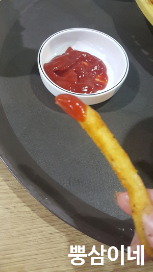 감자튀김을 한 접시(?)에 한꺼번에 넣어서 주신다는 점이에요.