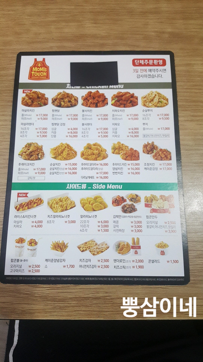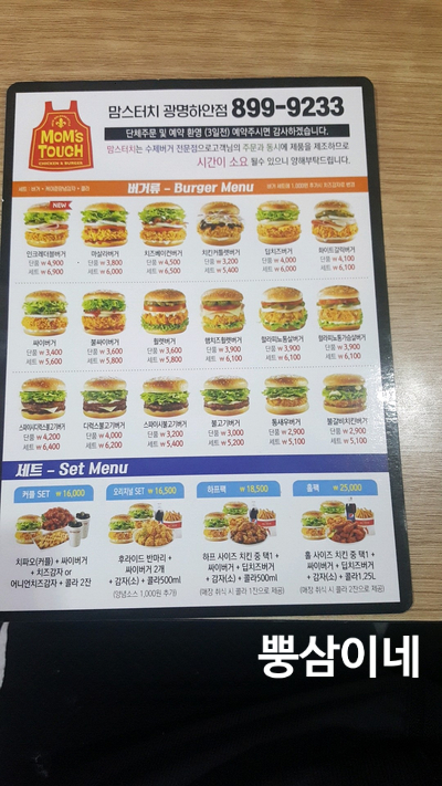 나중에 또 맘스터치가 생각날때 매뉴판 보고 가려구요