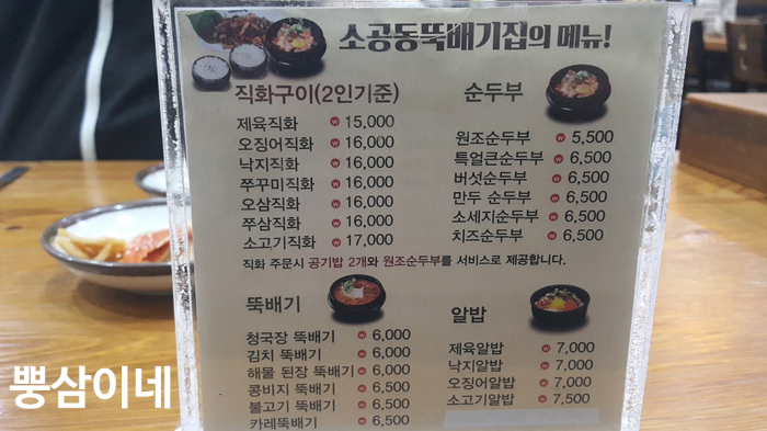 직화구이 요리랑 set 메뉴로 할 경우에는 순두부찌개보다는 콩비지찌개나 청국장찌개였으면