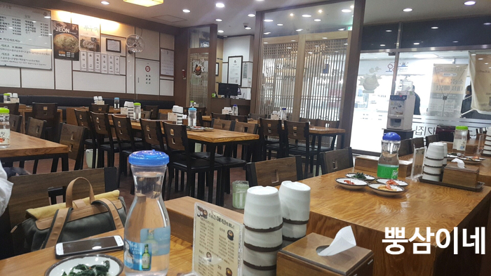 꽤나 넓고요 ~ 점심시간인지 테이블 마다 밑반찬들이 깔려있었어요