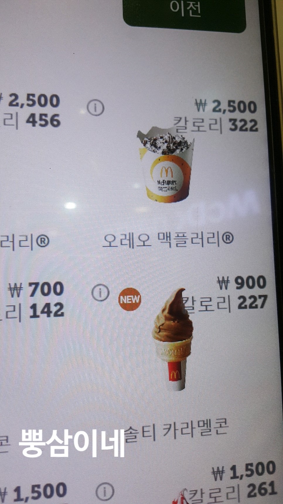 오래오 맥플러리 칼로리가.. ㅠㅠ