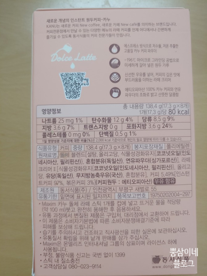 돌체라떼라 그런지 연유분말이 함유되어있어서 되게 달달했습니다.